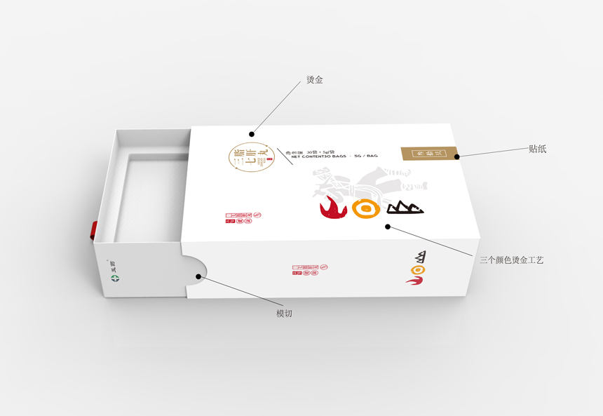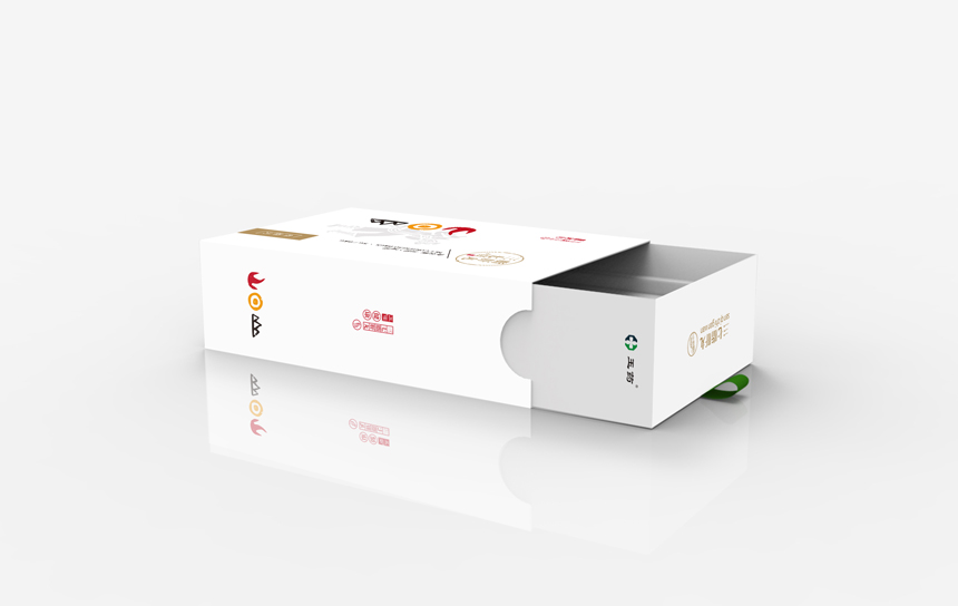 盒型:選用具層次感的抽拉式造型,左右不對稱設計,給受眾一種視覺跳躍感。