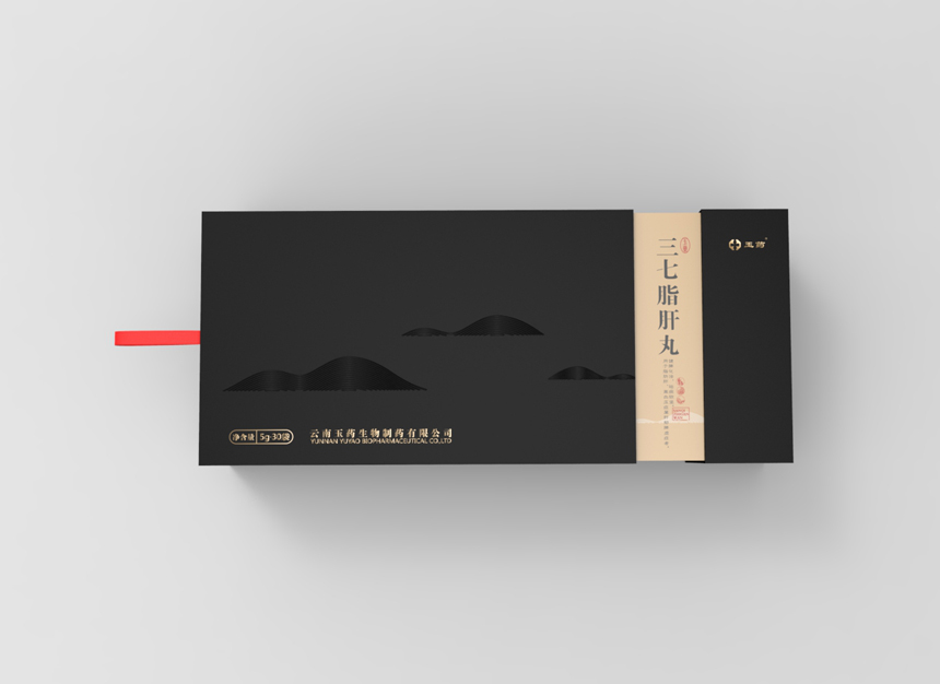 圓形處理包裹處理,整體劃一,使得整個包裝更加簡潔;提取“三七花、菊花、荷葉